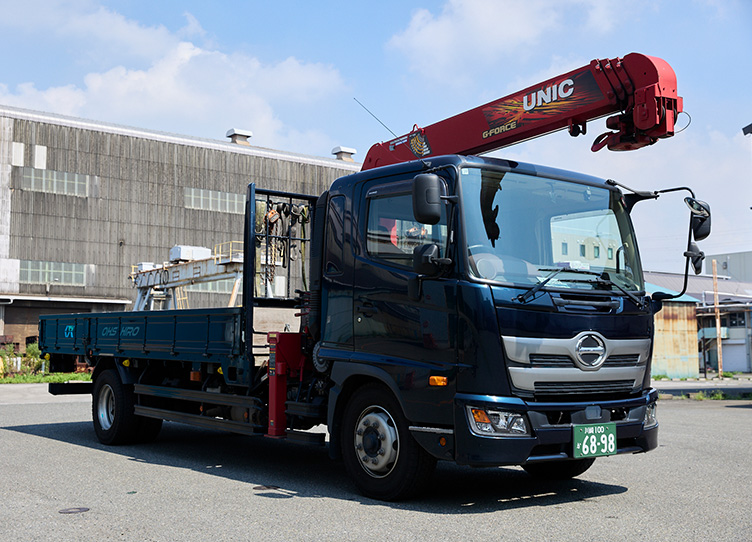 超精密機械輸送に欠かせないエアサス車をはじめ、ユニック車・ゲート・アコーディオン車も自社所有